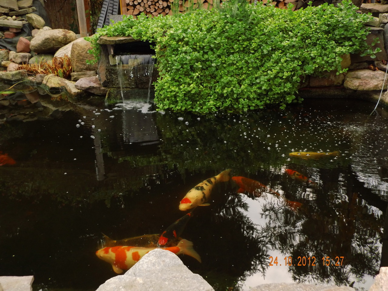 Die Fische sollten jetzt eine „Konditionsfütterung“ bekommen, so dass die Widerstandsfähigkeit sowie die Fettreserven steigen, damit sie gut über den Winter kommen. Hierfür empfehlen wir „AllSeason“ oder „Profi-Koi“ Futter.