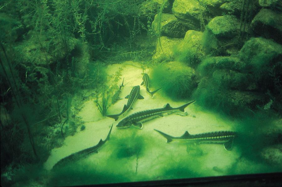 Auch Störe und Welse, z.T. als Albino, finden Sie in unseren zahlreichen Verkaufsbecken.