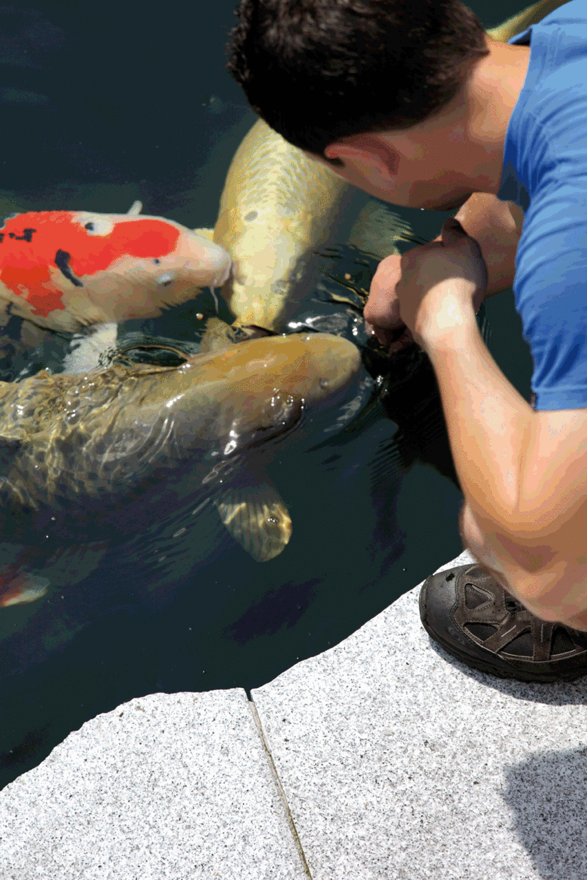 Alle Fische werden das ganze Jahr über im Freien gehalten, was die Eingewöhnung ihn ihrem eigenen Teich leichter macht.