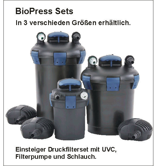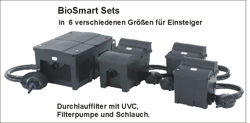 Wir führen ein umfangreiches Sortiment an Filteranlagen und UVC – Vorklärgeräten. Ganz gleich, ob Sie einen Gartenteich mit verschieden Fischarten, einen großen Koiteich oder gar einen Schwimmteich haben, für jeden Teich bieten wir Ihnen die passende Filteranlage und das richtige UVC - Vorklärgerät.