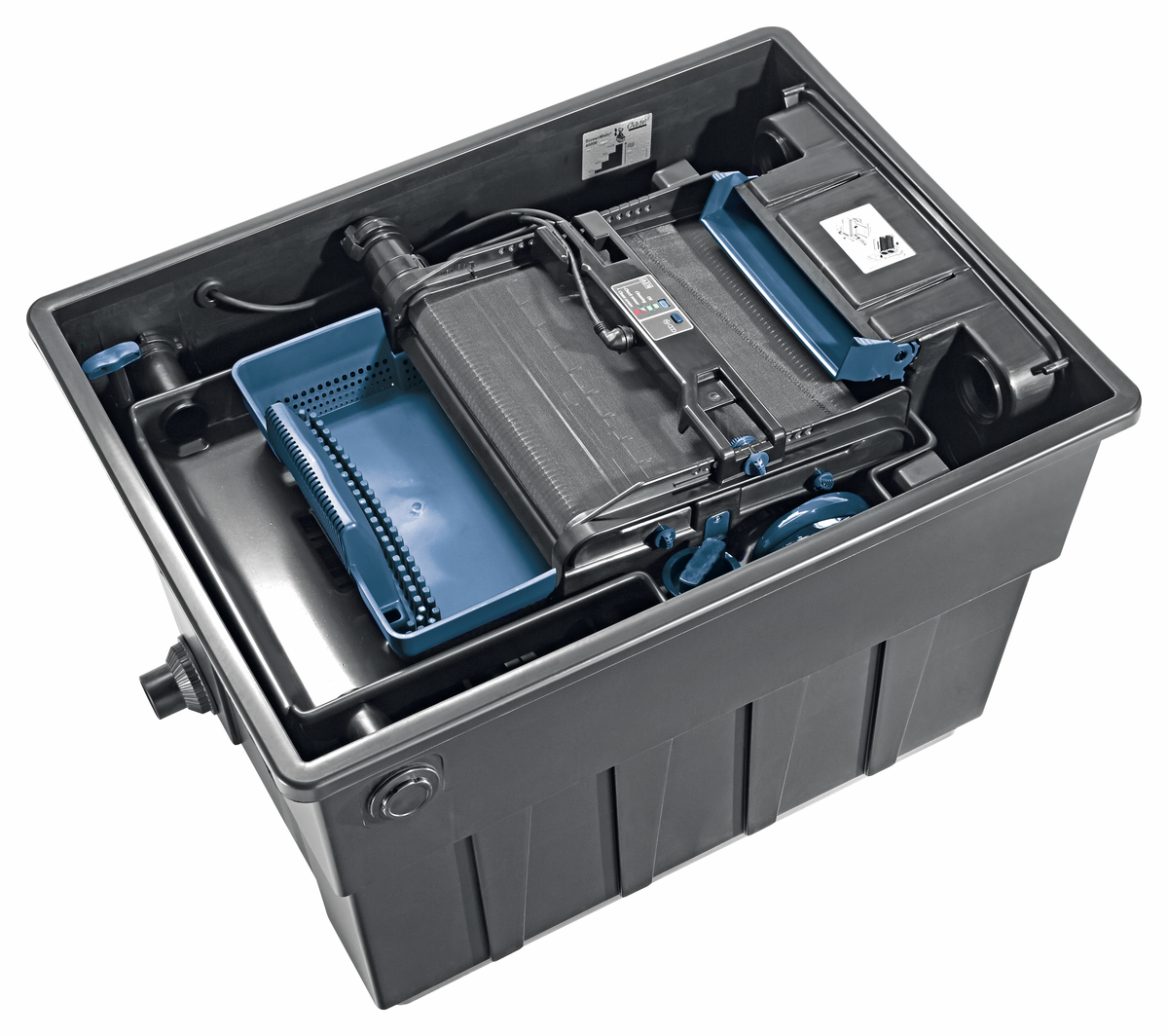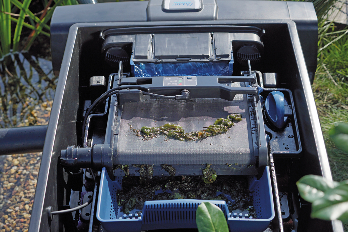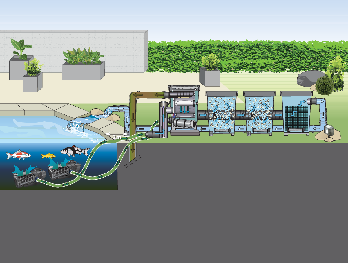 Auch eine hohe Abscheideleistung und ein geringer Platzbedarf zeichnen eine kompakte Alternative für kleinere Teiche bis 140 m³ aus. Eine Tiefenfiltration von bis zu 60 µm ist möglich.